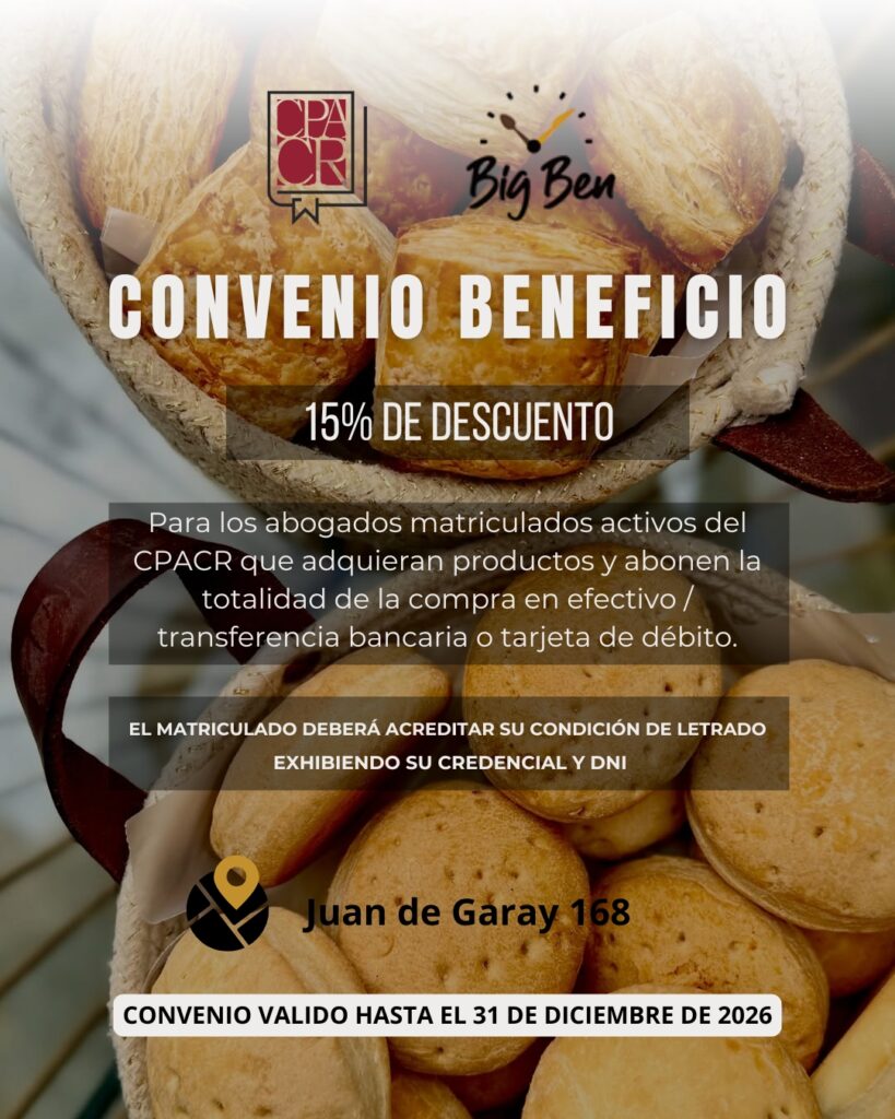 Renovamos convenio con la Panadería Big Ben – Coffe & Bakery, valido hasta el 31 de diciembre del 2026.