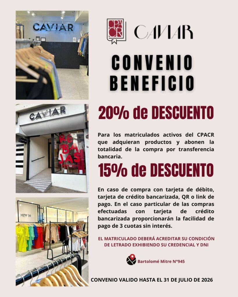 Se celebra convenio con la tienda CAVIAR, valido hasta el 31 de diciembre del 2026.
