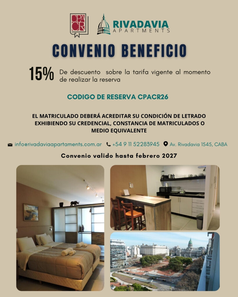 - https://rivadaviaapartments.com, utilizando el código de descuento CPACR26