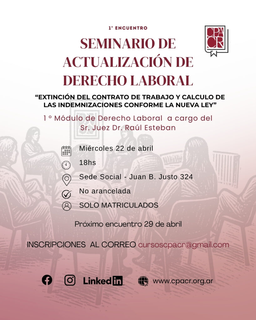 Tema: “Extinción del contrato de trabajo y cálculo de las indemnizaciones conforme la nueva ley”