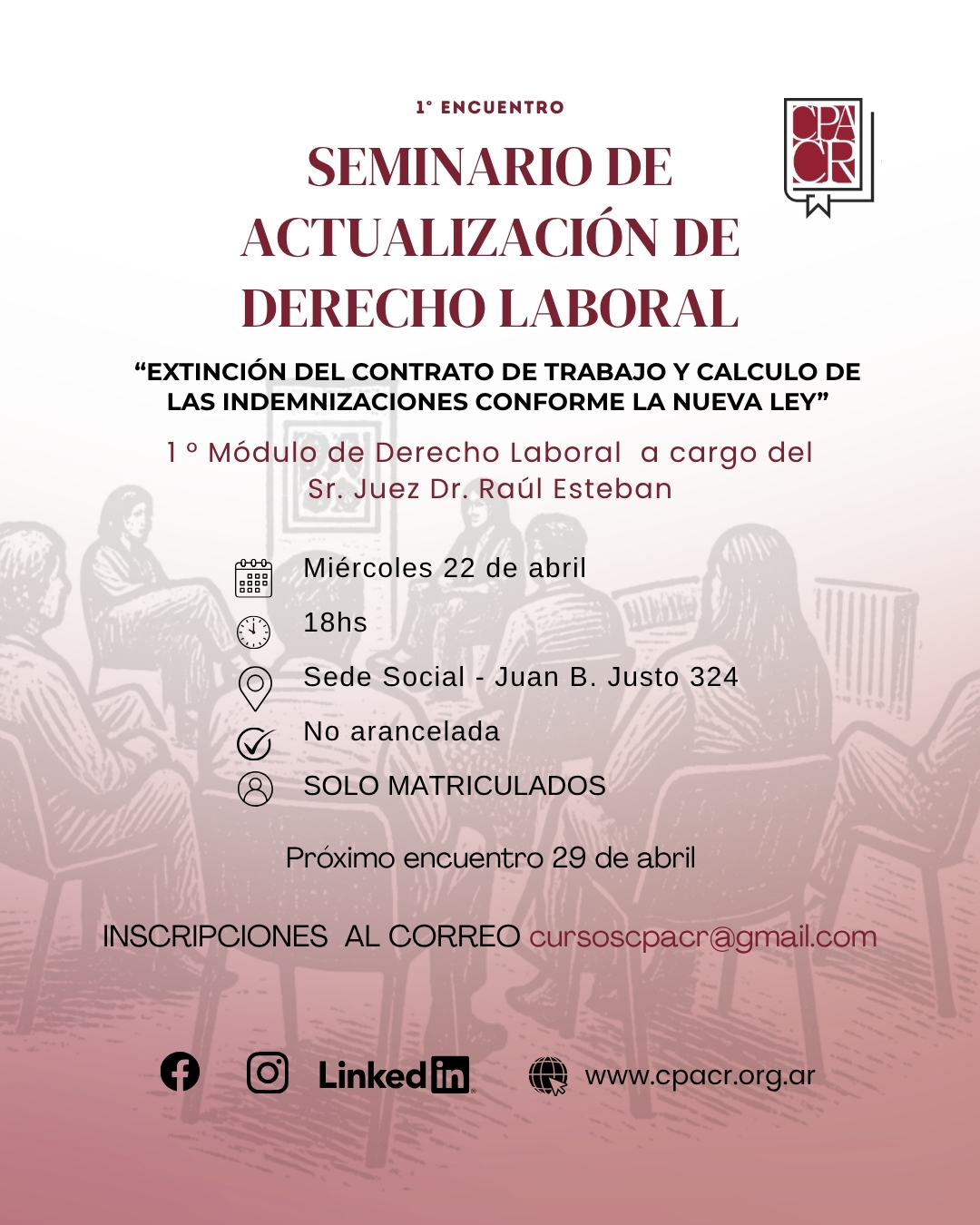 El Colegio Público de Abogados de Comodoro Rivadavia invita a sus matriculados a participar de un nuevo ciclo de actualización, compuesto por tres encuentros presenciales en nuestra sede social.